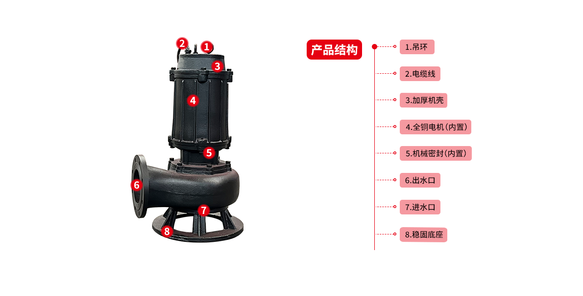 采用獨特的單片或雙葉片葉輪結構,大大提高了污物通過能力,能有效的通過泵口徑的5倍纖維物質與直徑為泵口徑約50%的固體顆粒。