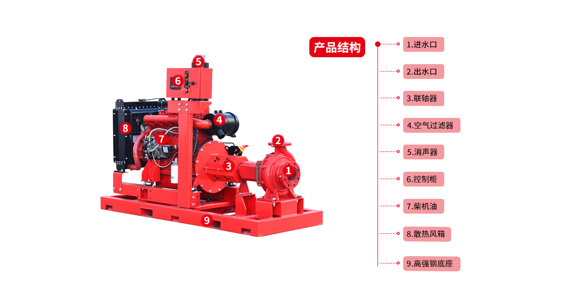 5.直連式:360kw以下柴油水泵機組采用國內*的柴油機與水泵通過彈性聯軸節直接連接技術,減少了故障點,并使機組的起動時間大大縮短,增加了機組的可靠性和應急性能;