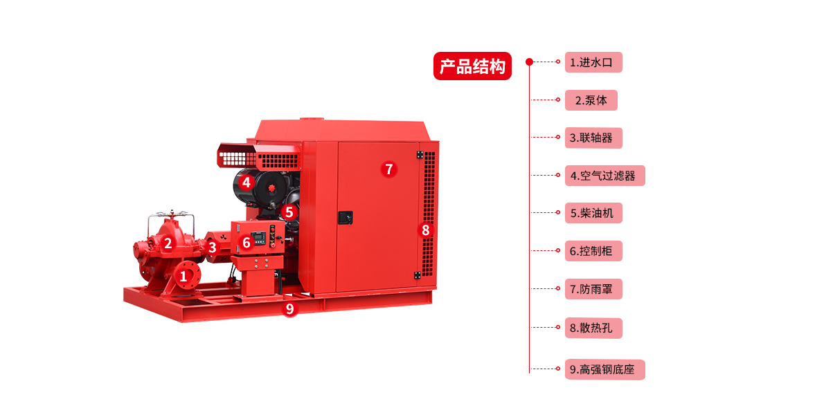 柴油機中開泵柴油機消防水泵是貝德科技集團有限公司嚴格按照標準GB6245消防泵性能要求和試驗方法等標準研制開發的一種新型消防設備,該系列設備按所配用的消防泵(單級單吸式、單級雙吸式、節段多級式)可分為XBC-IS、XBC-S、XBC-D等三個子系列,設備壓力、流量范圍廣,其應用幾乎能滿足消防所需的各種場合。XBC-IS柴油機消防泵組常用于高層建筑、自來水公司、鋼鐵廠、酒廠、化工廠、酒店、醫院、等大型項目工程應急供水。柴油應急供水泵組適用于無人值守應急給水系統,產品具有自動化程度高、性能優越保護功能齊全、結構合理、安裝簡易、性價比高等特點,當工廠突然停電、柴油機應急供水泵組自動啟動補充管網壓力。