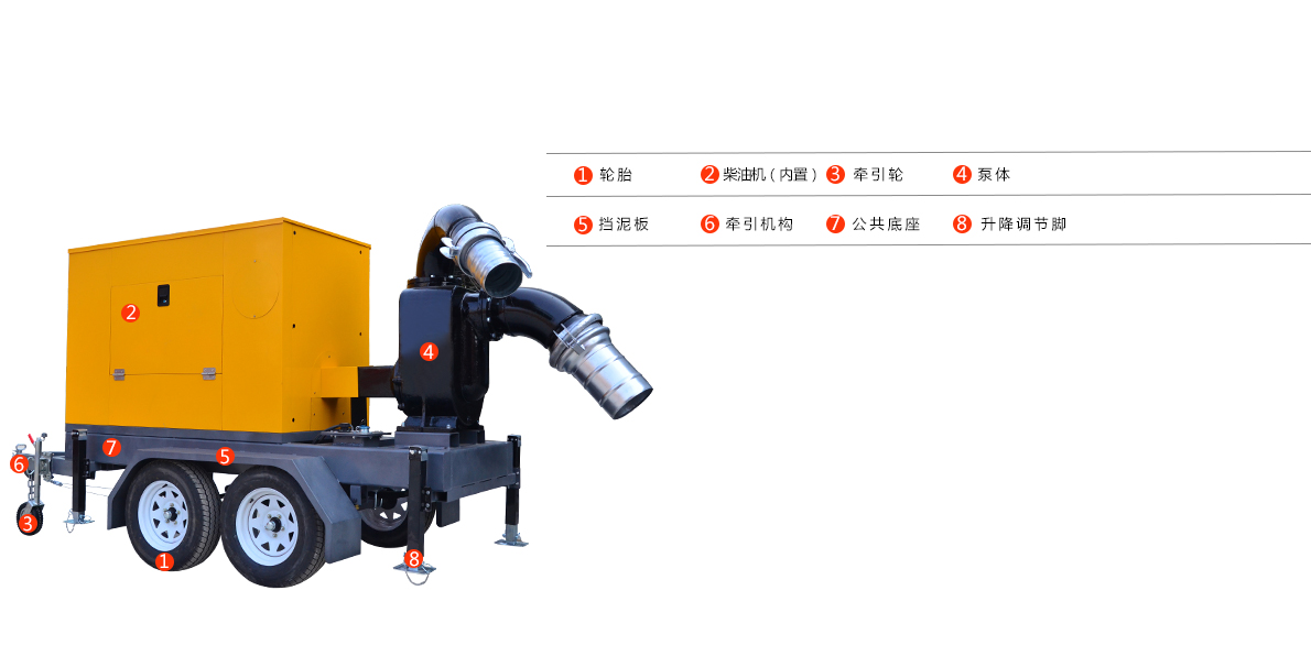 大流量混流型移動泵車集混流泵和無堵塞排污于一體,采用柴油機驅動軸向回流外混式,并通過泵體、葉輪流道的獨特設計,使用時不需要安裝底閥和灌引水。主要用于農田灌溉、農村灌溉、農業(yè)灌溉、排水泵站、雨水泵泵站、排灌排澇、防洪防汛、防洪排澇、抗旱減災等。大流量混流型移動泵車具有很好的自吸性能;而且機動性強,外置拖車裝置,可裝置與汽車尾部進行拖拽;本泵全自動操作無須人員值守,全系標配一鍵啟動。本泵車是防汛抗旱產品的較佳選擇,產品技術達到國際水平,具有廣泛的應用市場和發(fā)展前景。拖車式移動排澇泵車具有效率高、性能范圍廣、運行安全平穩(wěn)、噪音低、壽命長、安裝維修方便等特點。供輸送清水或物理化學性質類似于水的其它液體,也可以通過改變泵過流部件材質、密封形式和增加冷卻系統(tǒng)用于輸送熱水、油類、腐蝕性或含磨粒的介質。